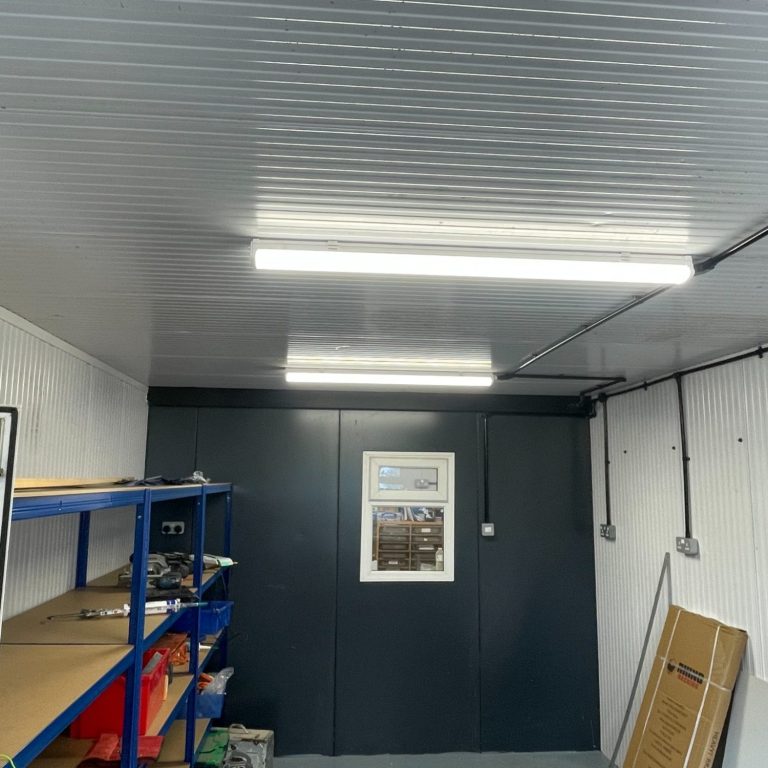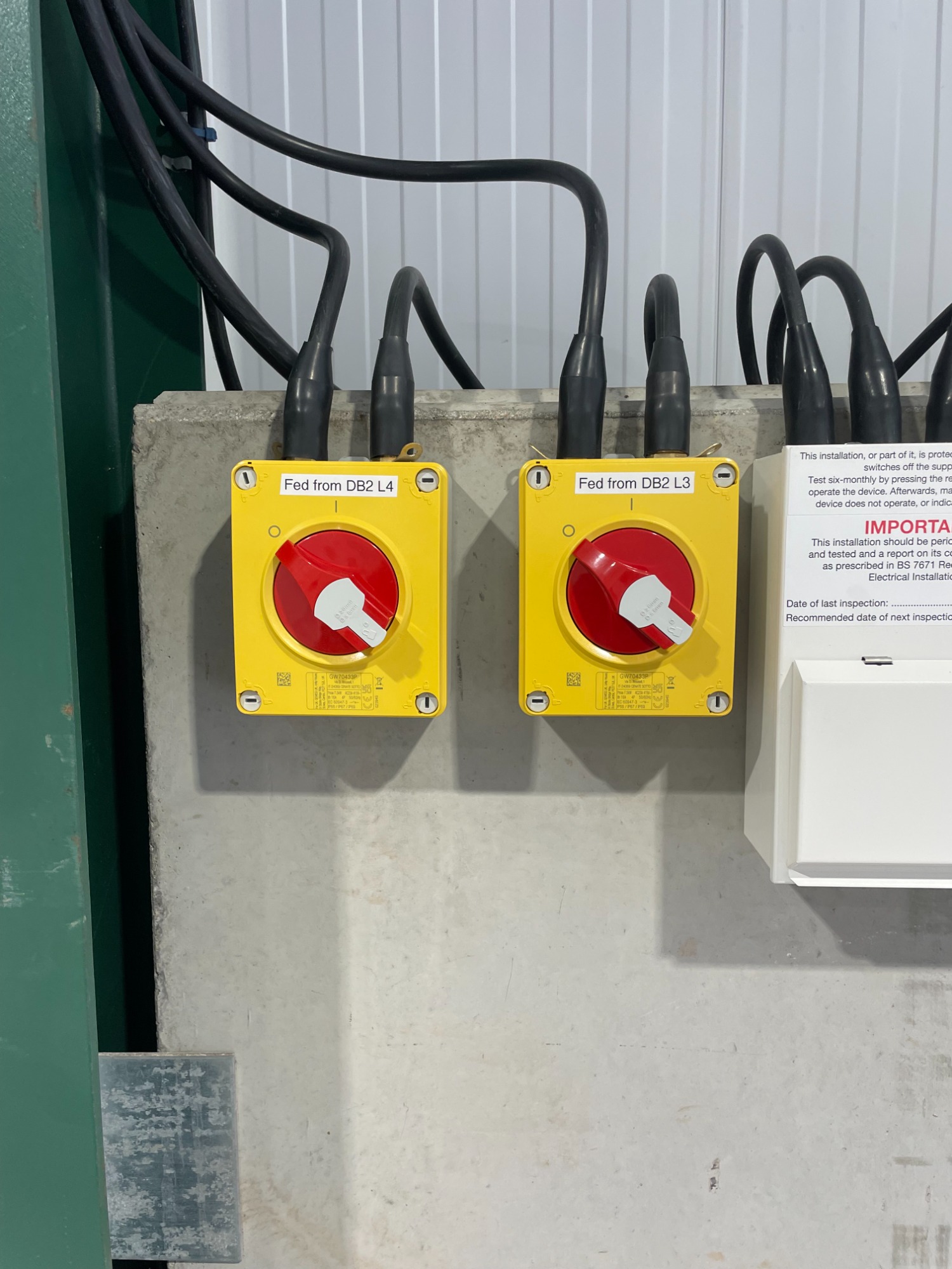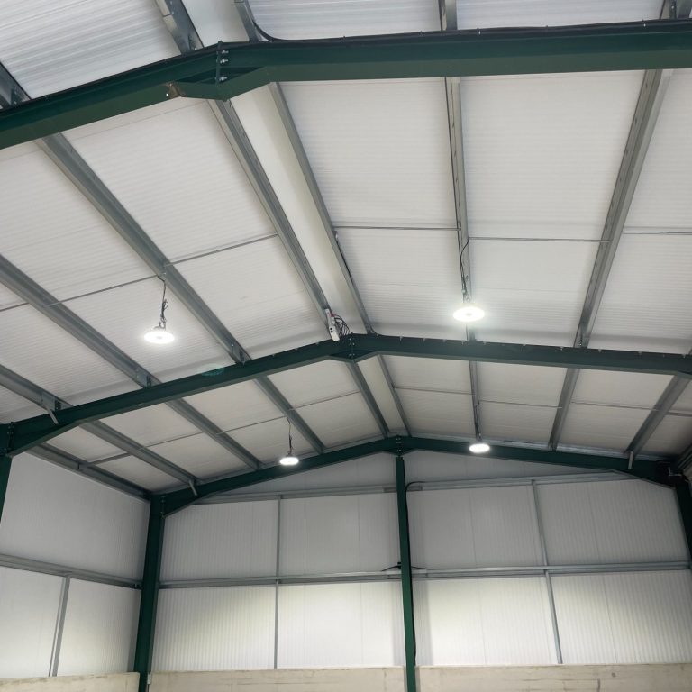 Customer had a new barn built and required internal lights, sockets, emergency lighting, outside lighting and isolators.